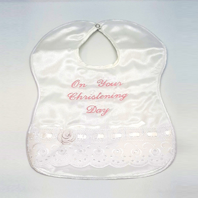 *If Personalised , we can add your babys Name & date of christening , your bib will then read for example “ James On Your Christening Day “ and then the date will be added below this, if you wish to add one