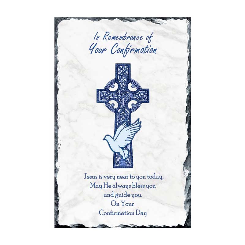 Confirmation Celtic Cross & Dove Slate – Personalised Design, Sturdy Stand