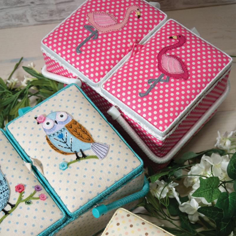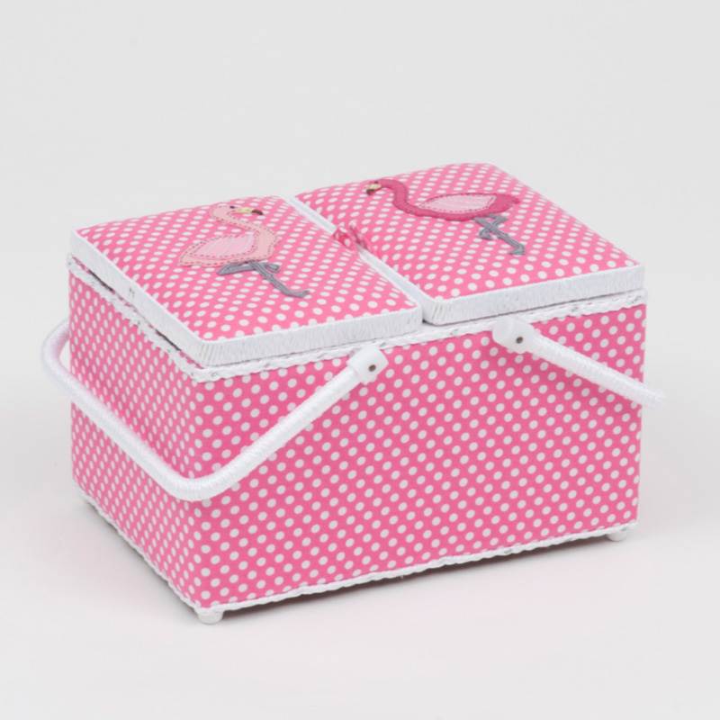 Sewing Box (L): Twin Lid: Appliqué: Flamingos
