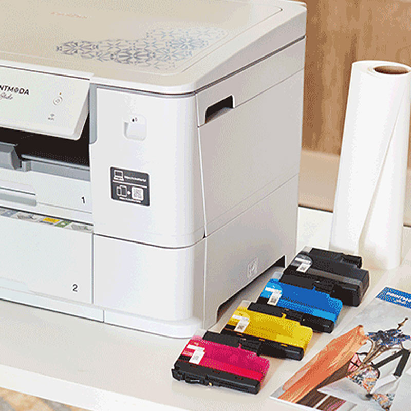 Get started straight out the box, with fabric, inks and three free projects supplied. Crafting in a small space? The Brother PrintModa Studio fabric printer can also print paper from its second tray. Double the use, double the fun!
