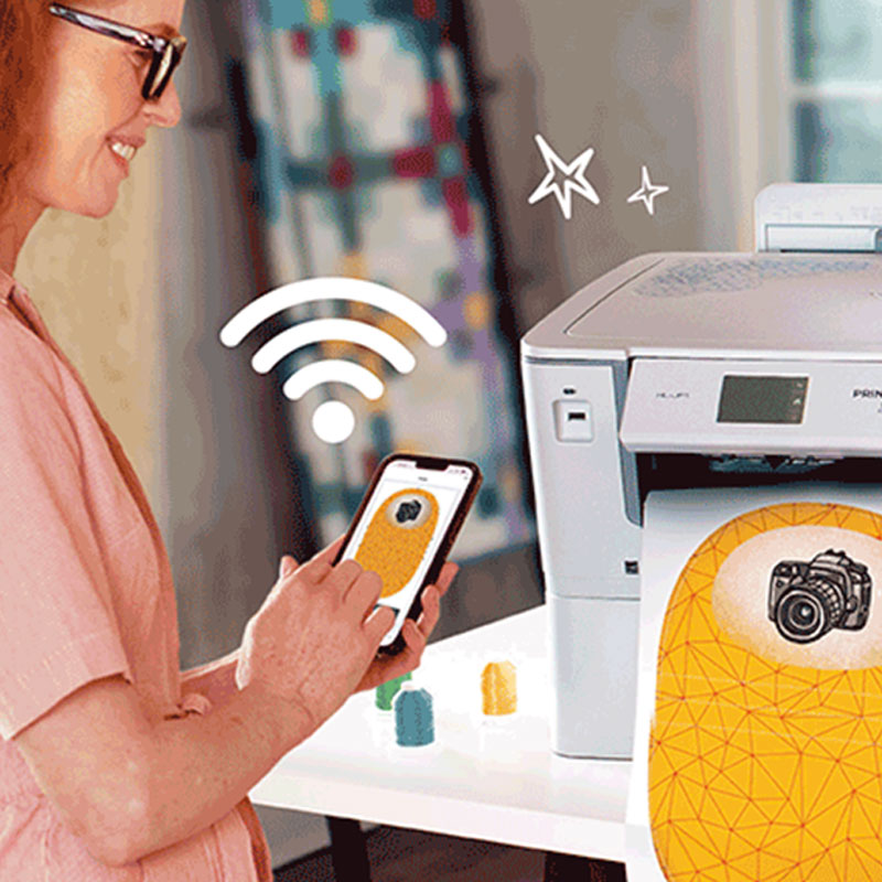 Use your favourite design software to print directly from your computer or smart device. Link to the Brother Artspira* design app to expand your creative possibilities even further. With Artspira you can even print quilt blocks, project templates, photo frames and more directly onto your PrintModa.